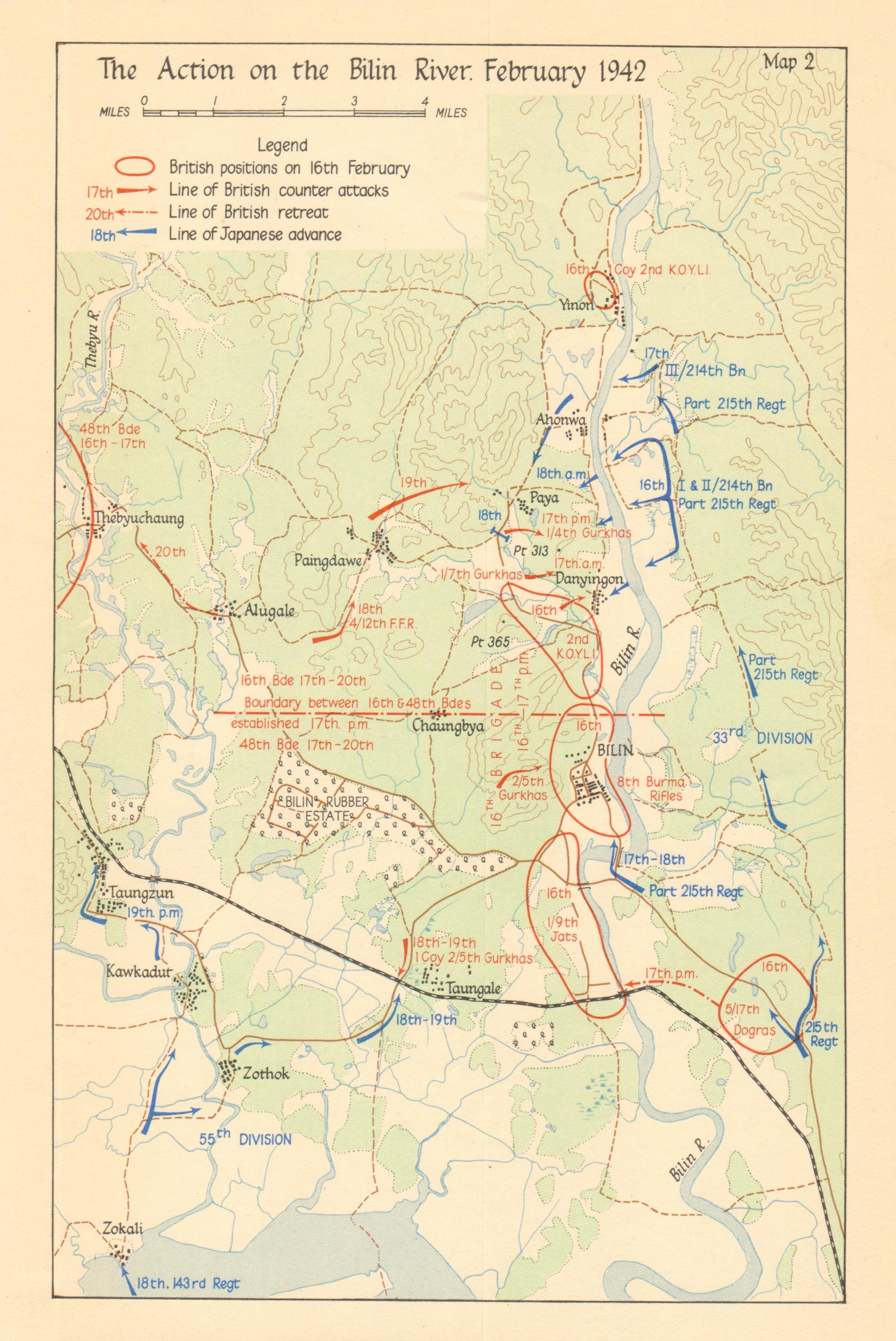 incl. Duyinzeik to Bilin cross country march by 1/7th Gurkhas and 5/17th Dogras on 18 Feb 1942.